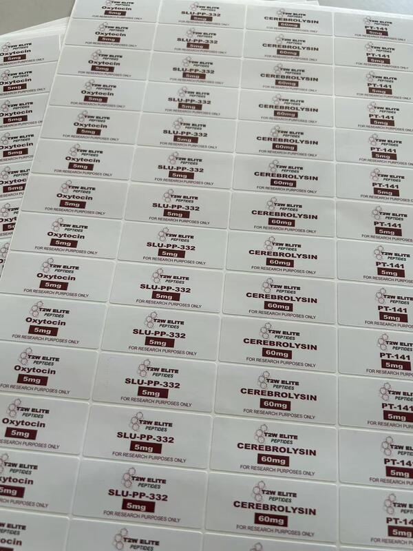 | ハイライト: | Oxytocin 5mg peptide vial labels,PVC labels for small peptide vials,Medicine bottle labels with PVC material |
